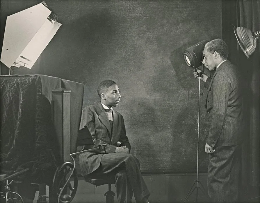 Scurlock Studio, Addison N. Scurlock posing a client in Scurlock Studio at 900 U Street NW, c. 1951, gelatin silver print, Scurlock Studio Records, Archives Center, National Museum of American History, Smithsonian Institution