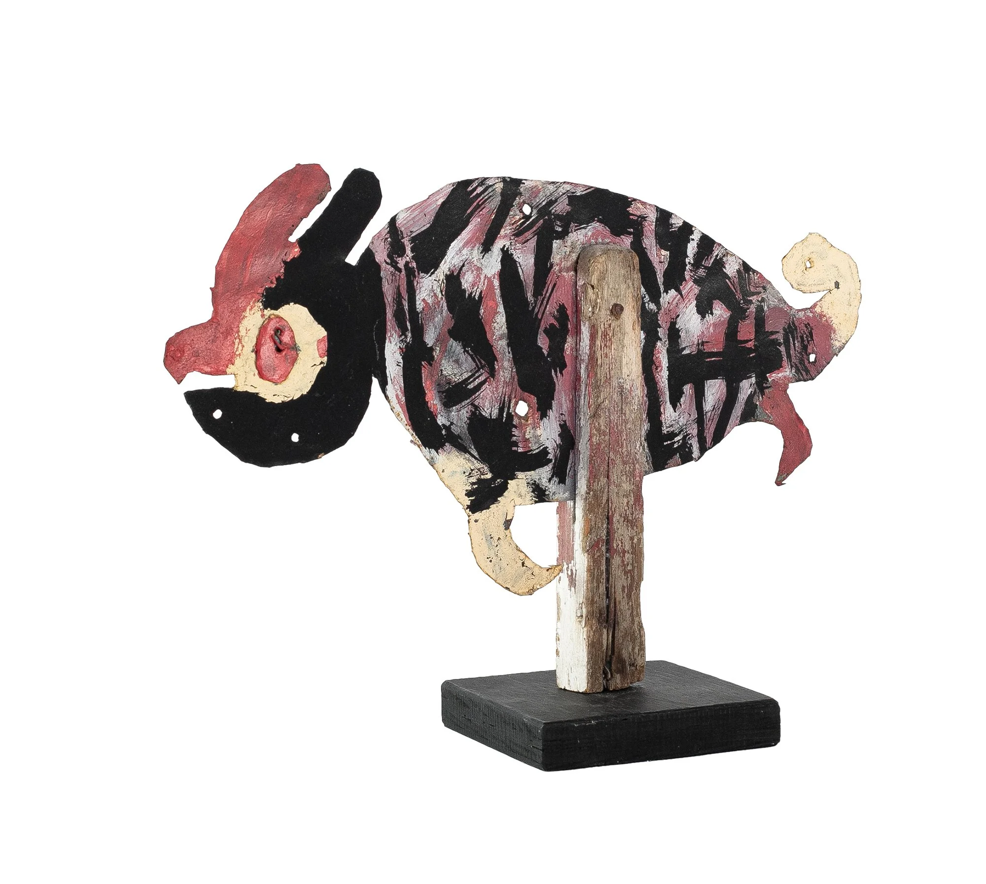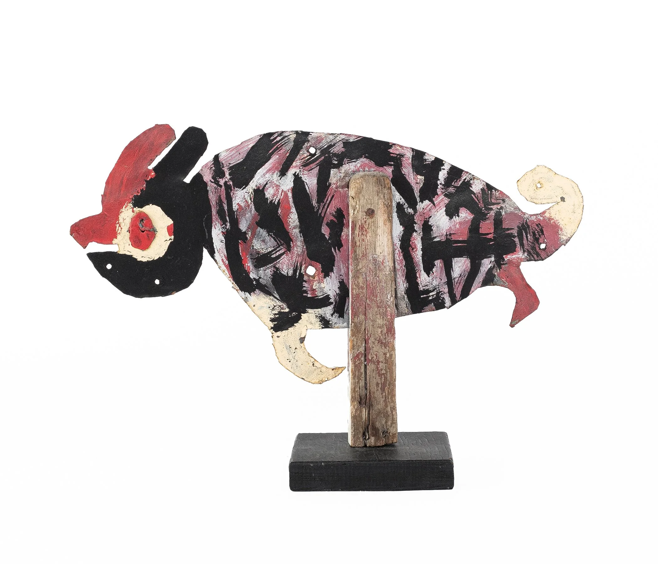 David Butler was born in 1898, the eldest of 8 children in St. Mary Parish, Louisiana. He attended school for one year, but left to help take care of his siblings after his mother’s death. When his siblings were old enough, he moved to Patterson, Louisiana where he worked a series of jobs in manual labor. When an injury at a sawmill, rendered him unable to work, he began making art in earnest - in an effort to brighten his yard up. He began cutting shapes out of discarded sheets of tin sheet using a hammer and chisel, and decorating these creations with house paint. Before long, his yard and home were completely populated with his constructions (critters) and kinetic sculptures (whirligigs).
