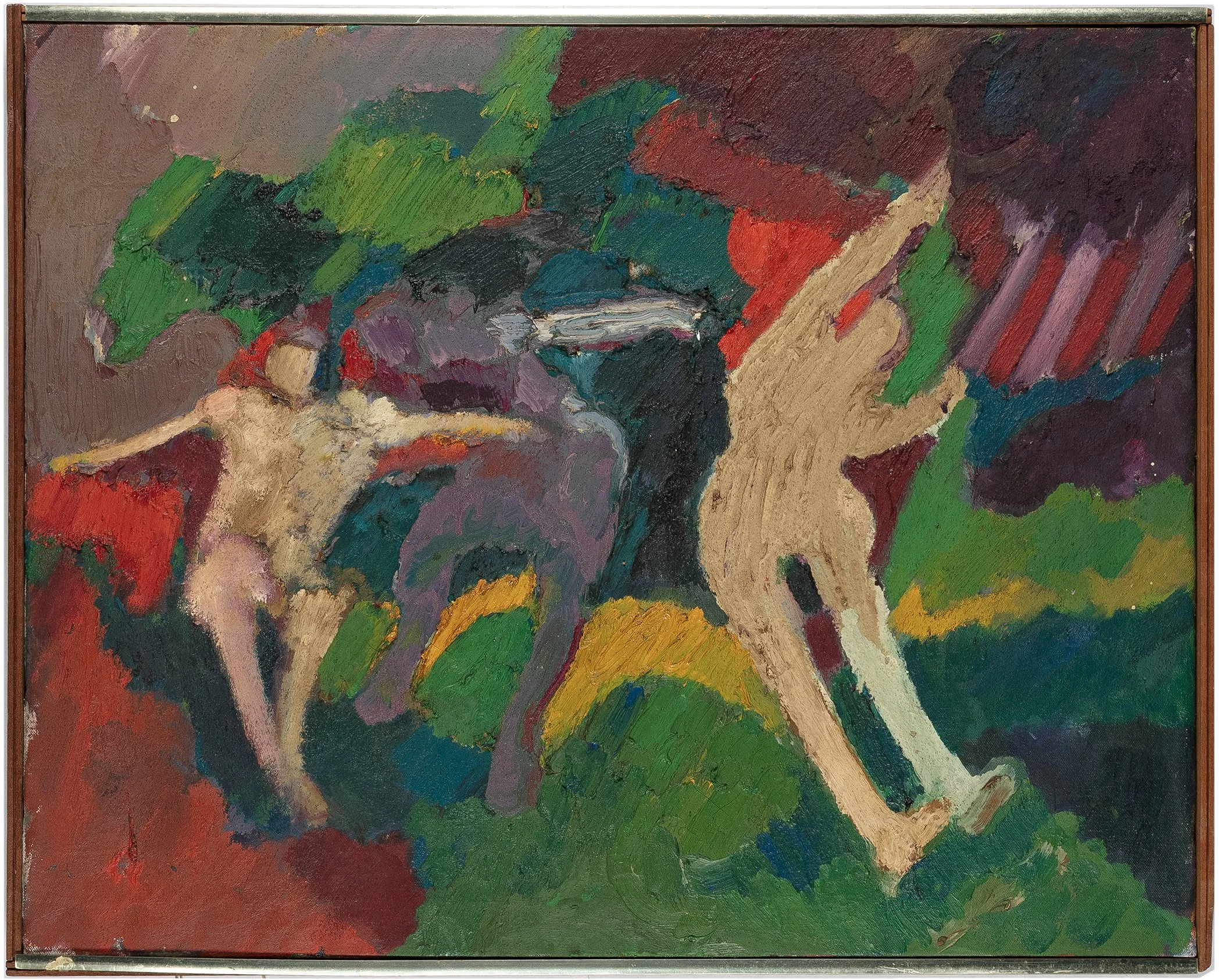 Cruz refined his craft at the Art Students League and The New School in NYC and later at the Seong Moy School of Painting and Graphic Arts in Provincetown, Massachusetts. Immersed in the avant‑garde scene of the late 1950s and ’60s, he collaborated with and was influenced by artists such as Bob Thompson, Lester Johnson, and Jan Müller, exploring a fusion of Abstract Expressionism with bold, figurative storytelling. Cruz's paintings offer expressive figuration and conjure mythic worlds. Human and animal forms intertwine with archaeological and mythological motifs, rendered in vivid color, gestural lines, and surreal undertones.
